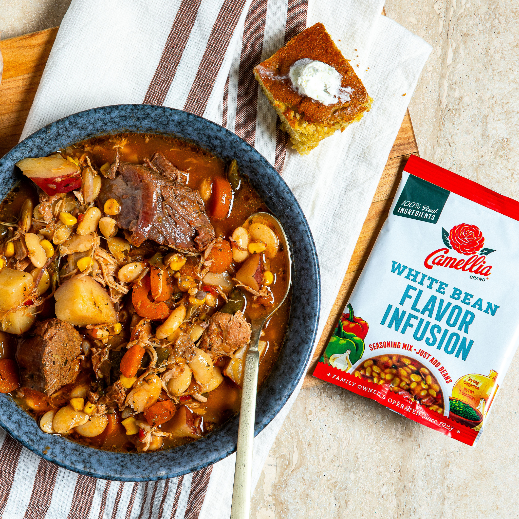 White Beans and Rice is a traditional South Louisiana meal. Our White Bean Flavor Infusion Seasoning is a tried-and-true blend of authentic Cajun spices and vegetables you can use to season a pot of Camellia® Brand Great Northern Beans (or your favorite white beans) to perfection.
