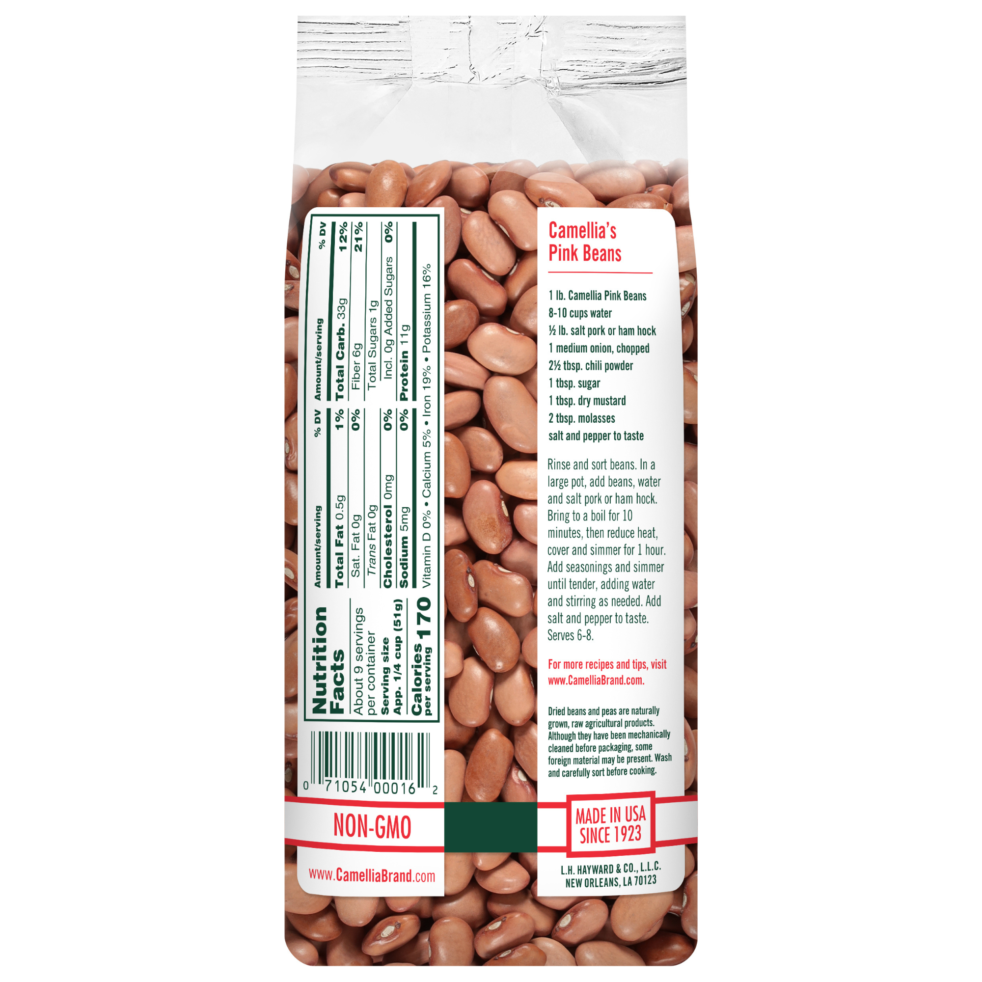 Pink Beans are small, pale, and brownish-pink with a rich, meaty flavor and a slightly powdery texture. They’re similar to pinto beans, but smaller and rounder. Pink Beans can hold spices, making them great for Mexican meals. Try them for homemade refried beans!